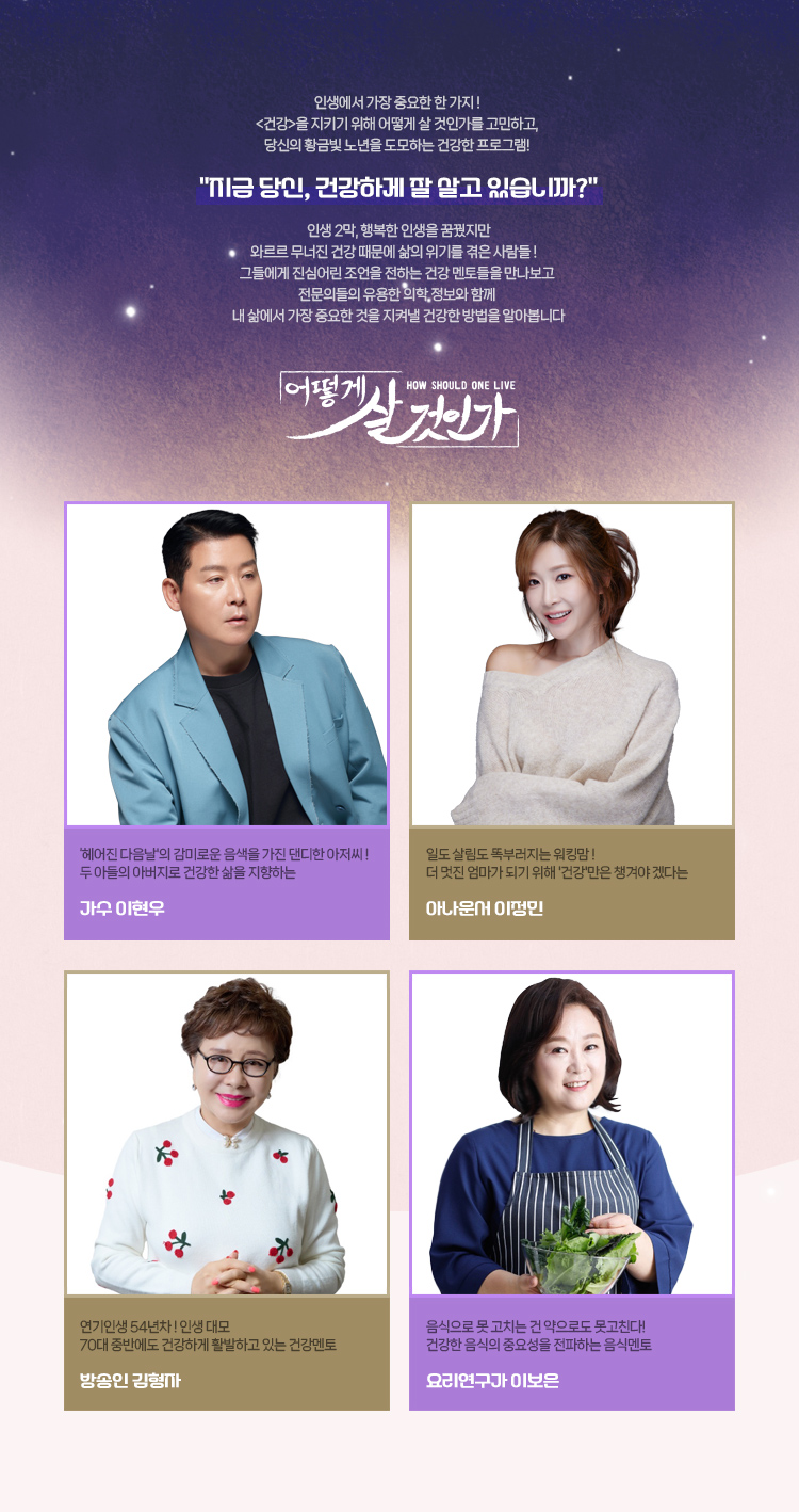 어떻게 살 것인가? 일 오전8시30분 홈 스크랩 공유 공유 닫기 카카오톡 페이스북 트위터 URL 복사 네이버TV 카카오TV 프로그램 홈 프로그램소개 프로그램 소개 기획의도 방송보기 예고편 명장면 다시보기 시청자참여 시청소감 프로그램 소개